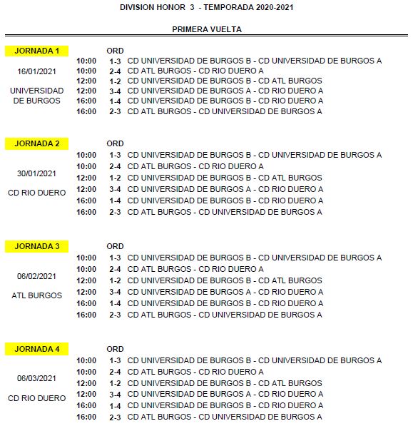 Partidos Liga División de Honor